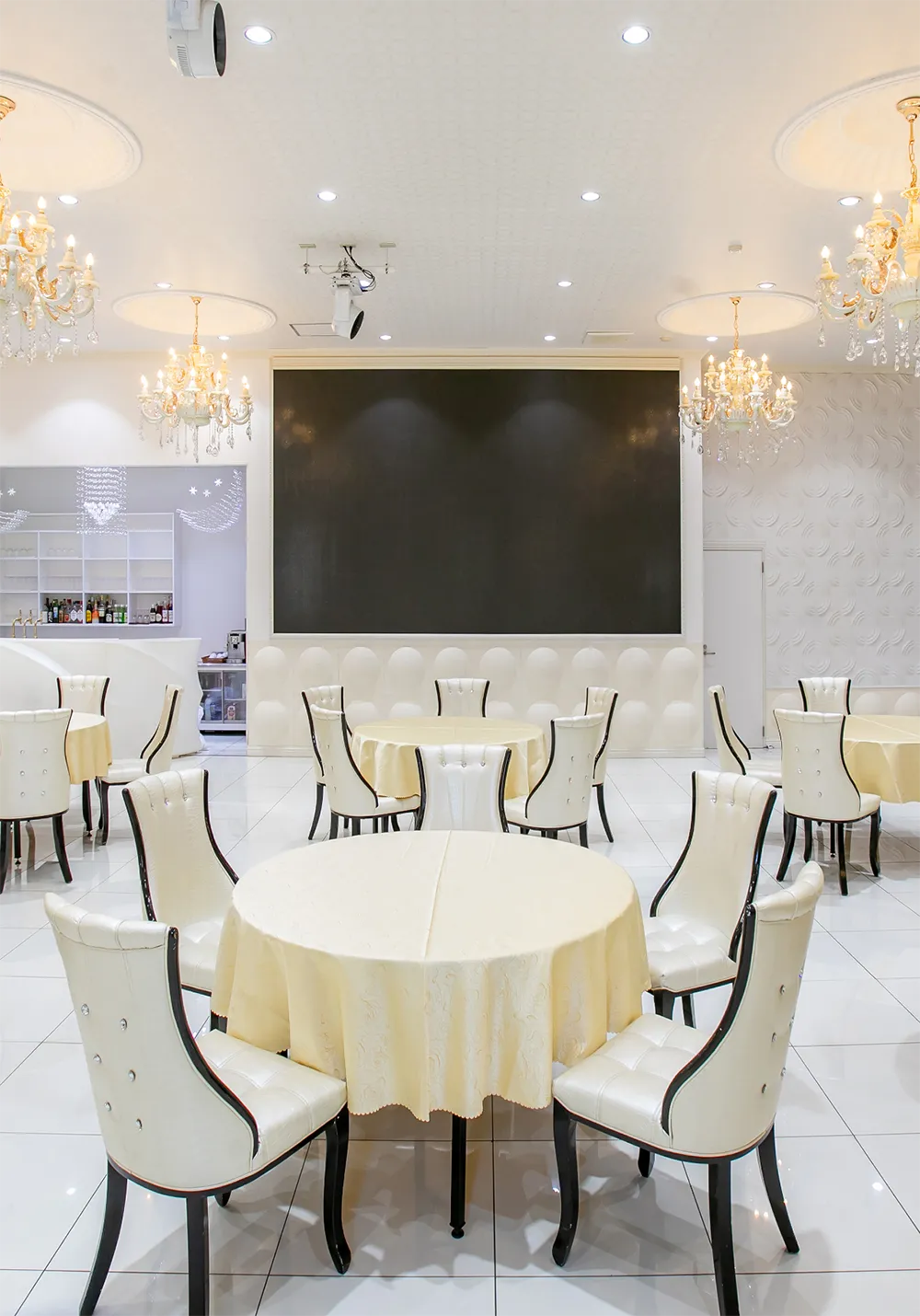 メインスペースには、円卓・音響・照明・大型LEDビジョンなど、さまざまな設備が充実しています。